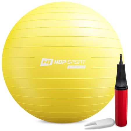 Gymnastikball von Hop-Sport, Gratis Luftpumpe, Max. Belastbarkeit: 100 kg, Großer Anwendungsbereich, 70cm, kostenlose Lieferung, Gelb