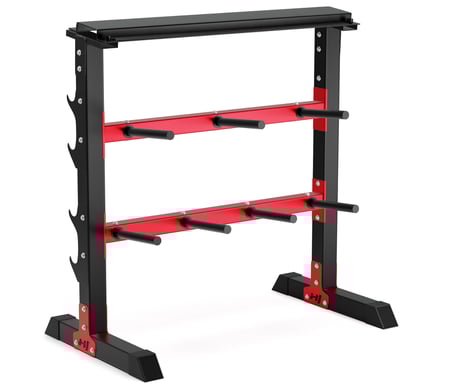 Sind Sie auf der Suche nach einer besseren Lösung für die Aufbewahrung von Ihrem Krafttraining-Zubehör? Der Hantelständer HS-1007A ist ein funktionelles Gerät, dank dessen Sie Ihre Hantelstangen und Hantelscheiben an einer Stelle ablegen können.Der Vorzug dieses Ständers ist eine stabile Konstruktion mit einer Profilstäke von 45 x 45 mm und Pulverbeschichtung , was ihm eine optimale Stabilität und Haltbarkeit verleiht. Dieses Modell ist bis zu 350 kg belastbar , verfügt über 7 Hantelscheibenablagen-Pins , 4 Ebenen für die Hantelstangen und eine Ablage für Kurzhanteln - dadurch ist eine bequeme Aufbewahrung von Ihrem Trainingsequipment gewährleistet.