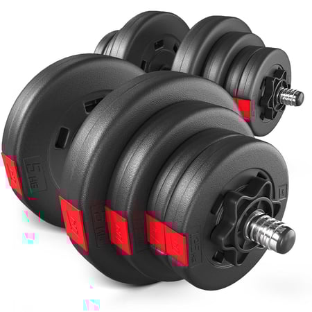 Ein Kurzhantel-Set ist folgendermaßen zusammengestellt: