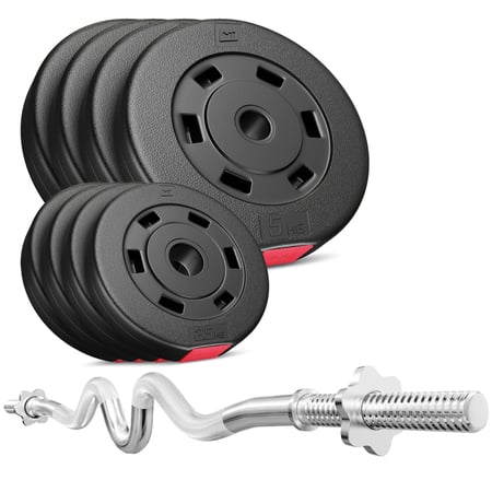 Kunststoff Hantelset 37 kg (4 x 5 kg, 4 x 2,5 kg) mit 1 x Super SZ-Curlstange 120 cm inklusive 2 Sternverschlüße