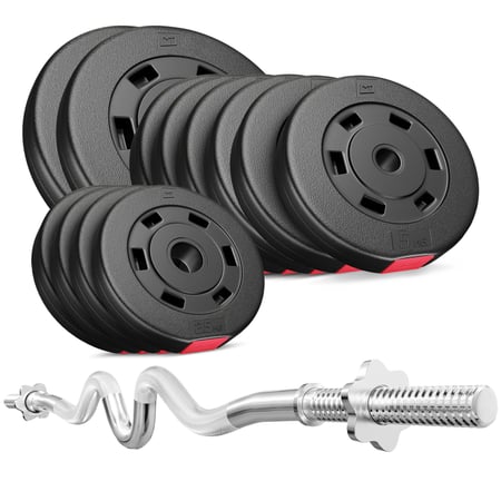 Kunststoff Hantelset 67 kg (2 x 10 kg, 6 x 5 kg, 4 x 2,5 kg) mit 1 x Super SZ-Curlstange 120 cm inklusive 2 Sternverschlüße