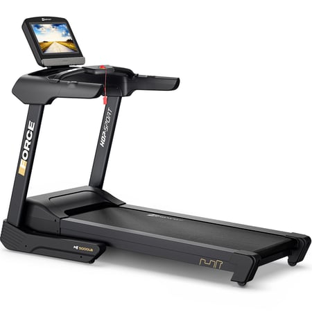 Das Laufband HS-5000LB Force ist für intensive Trainingseinheiten konzipiert. Der 4,5-PS-Motor ermöglicht eine gleichmäßige Geschwindigkeitseinstellung von 1 bis 22 km/h, sodass sowohl Gehen als auch schnelles Laufen komfortabel sind.
