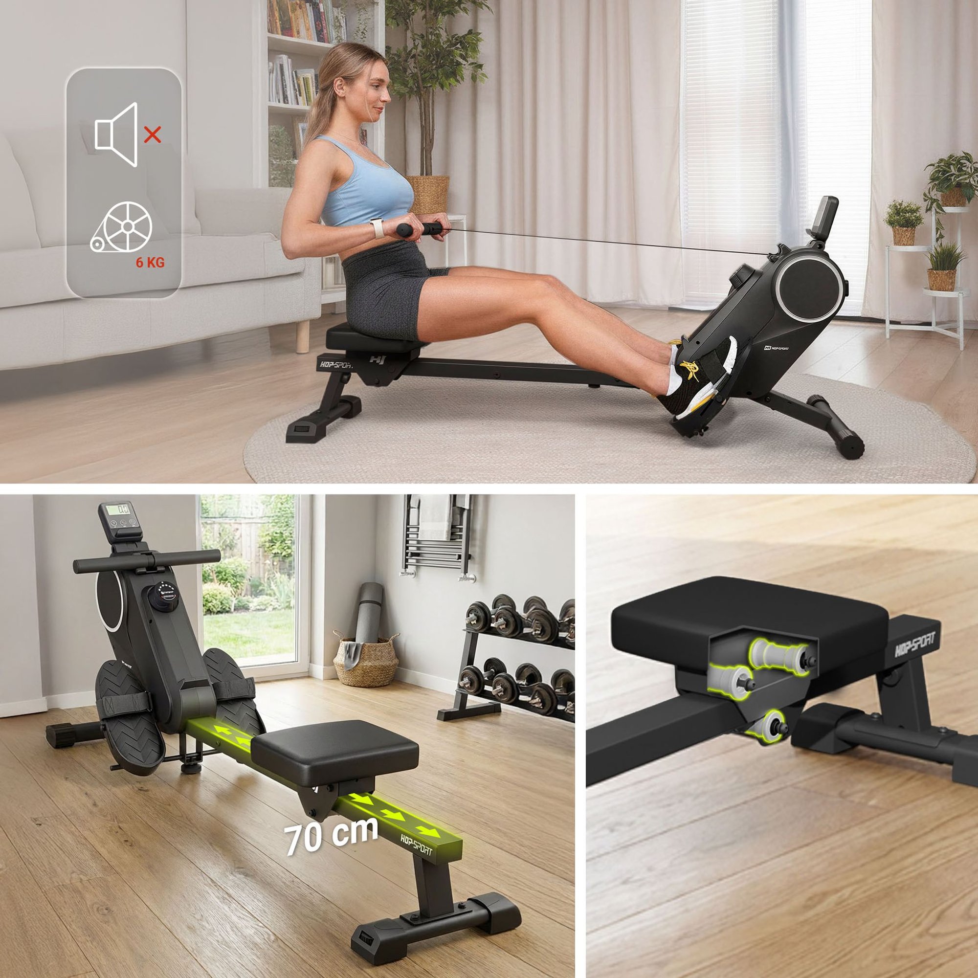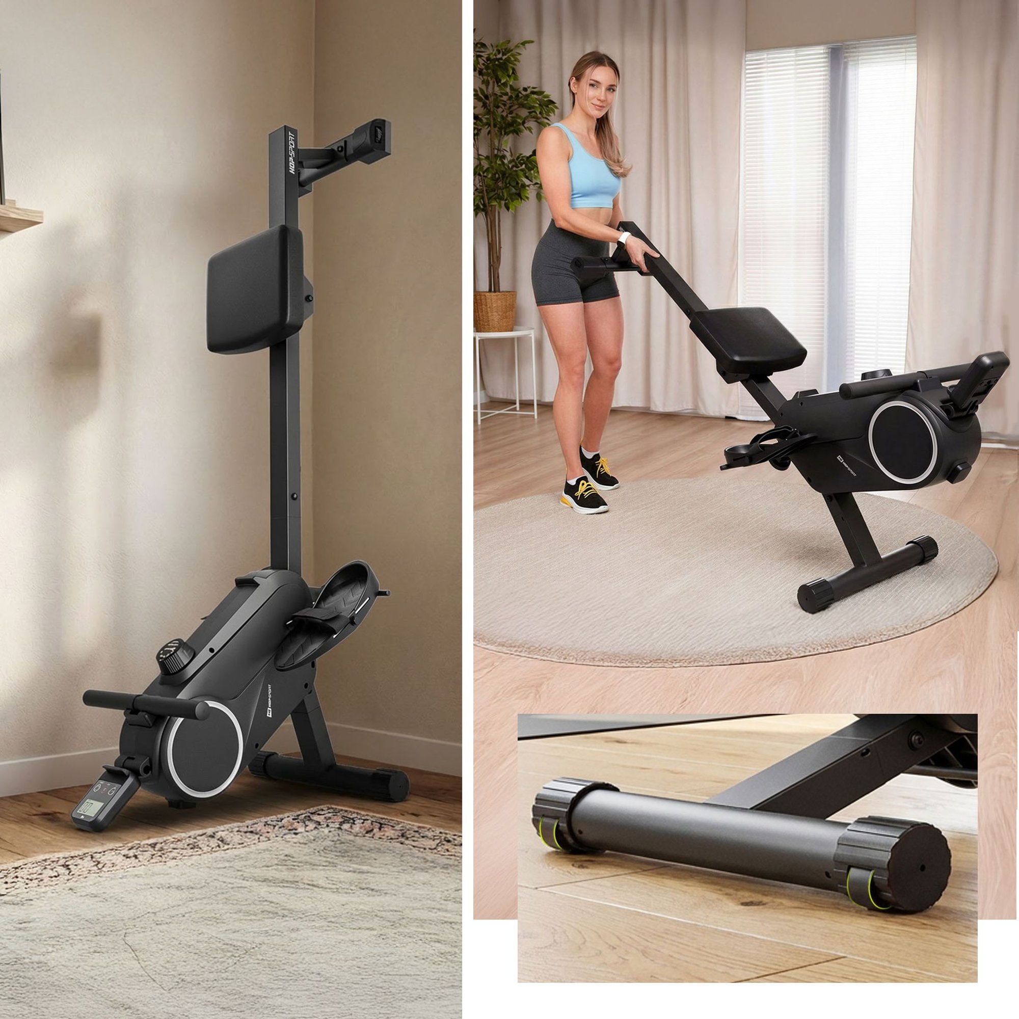 Magnetisches Rudergerät HS-055R Creek: mit 16 Widerstandsstufen, LCD-Computer, Bluetooth. Leises, klappbares und stabiles Gerät – belastbar bis 110 kg.