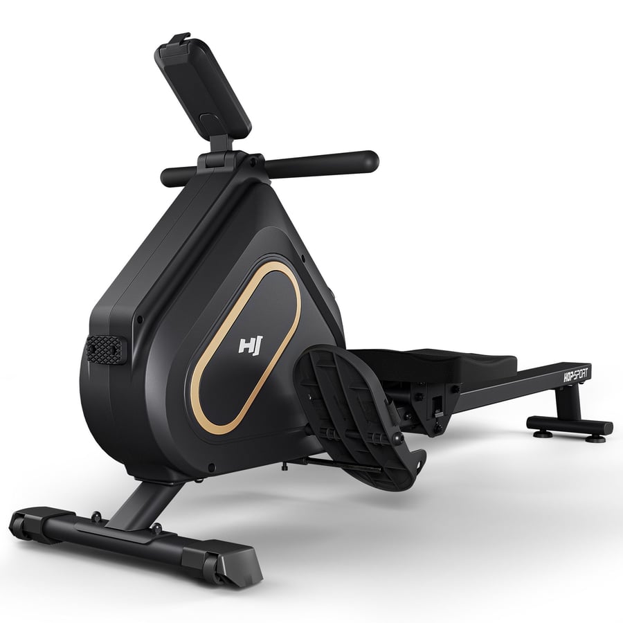 Das magnetische Rudergerät HS-085R Bazel ist ein leises und platzsparendes Fitnessgerät, das sich perfekt für das Training zu Hause eignet. Der intuitive Trainingscomputer zeigt Zeit, Distanz, Ruderschläge, Kalorienverbrauch und Schlagfrequenz an; die Scan-Funktion ruft die Werte automatisch nacheinander ab. Dank Bluetooth können Sie das Gerät mit der kompatiblen Kinomap-App verbinden und auf virtuellen Strecken trainieren. Der 16-stufige Widerstand lässt sich präzise an Ihr Leistungsniveau anpassen, während die Metallschiene und das Einseil-System einen natürlichen, flüssigen Bewegungsablauf ermöglichen. Durch den leisen Betrieb eignet sich das Rudergerät besonders gut für Wohnungen. Nach dem Training kann es mühelos aufrecht abgestellt und dank Transportrollen verschoben werden – ein praktisches, ergonomisches Gerät, das wenig Platz benötigt.