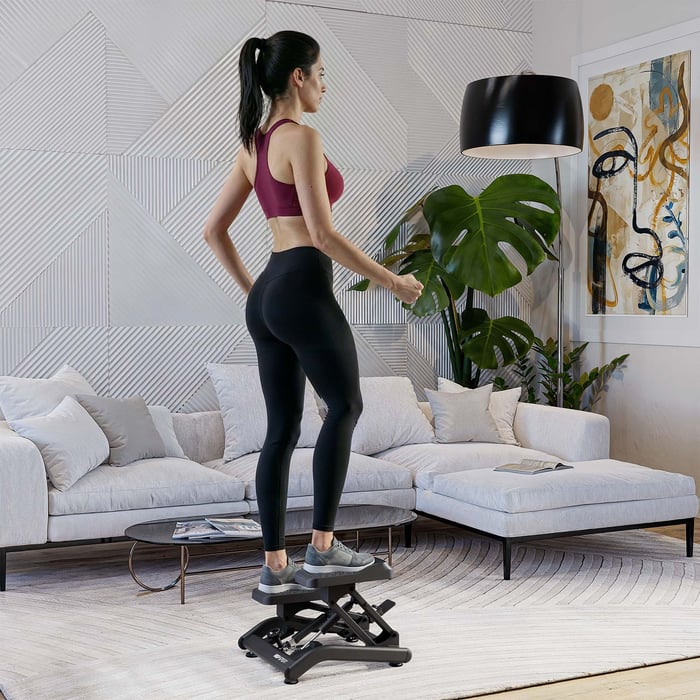 Der Fitness-Stepper HS-050B Skite verfügt über eine manuelle Widerstandsregulierung mittels praktischem Drehknopf. Dadurch passen Sie die Trainingsintensität optimal an Ihr Leistungsniveau an. Stabile, höhenverstellbare Standfüße ermöglichen eine sichere Aufstellung auch auf unebenem Untergrund, während breite, rutschfeste Pedale für mehr Sicherheit und Stabilität sorgen. Dieser leise Heimstepper arbeitet gleichmäßig und stört weder Sie noch andere Haushaltsmitglieder.