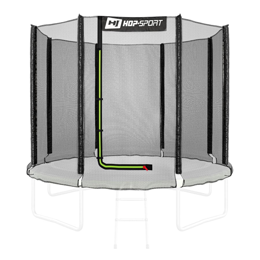 Das außenliegende Sicherheitsnetz ist für das Modell 8FT mit einem Bodendurchmesser von 244 cm geeignet. Es verfügt über 8 Befestigungspunkte für Stangen. Die Abstände zwischen den Halterungen sind exakt auf die Trampolingröße abgestimmt. Dadurch ist das Netz stabil und gleichmäßig gespannt.